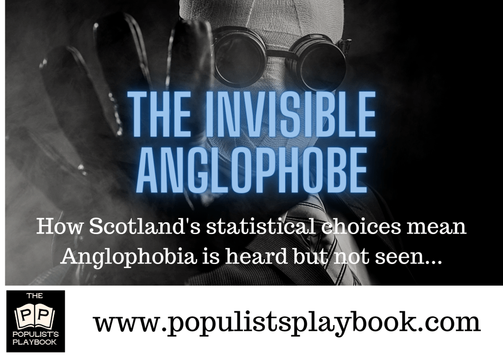 Maybe Anglophobic is rising, maybe it’s dropping, maybe it’s negligible – but when you have a data-obsessed state spending millions to ask about 72 genders, 350 ways you feel nationally, and if you are ethnically Scottish – as well as about racist incidents and even want schools to ask how much anal sex 14 year olds are having in non-anonymised data – doesn’t it seem remaining wilfully ignorant that they don’t choose to measure this?