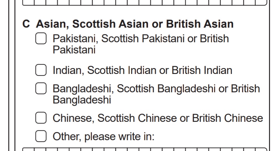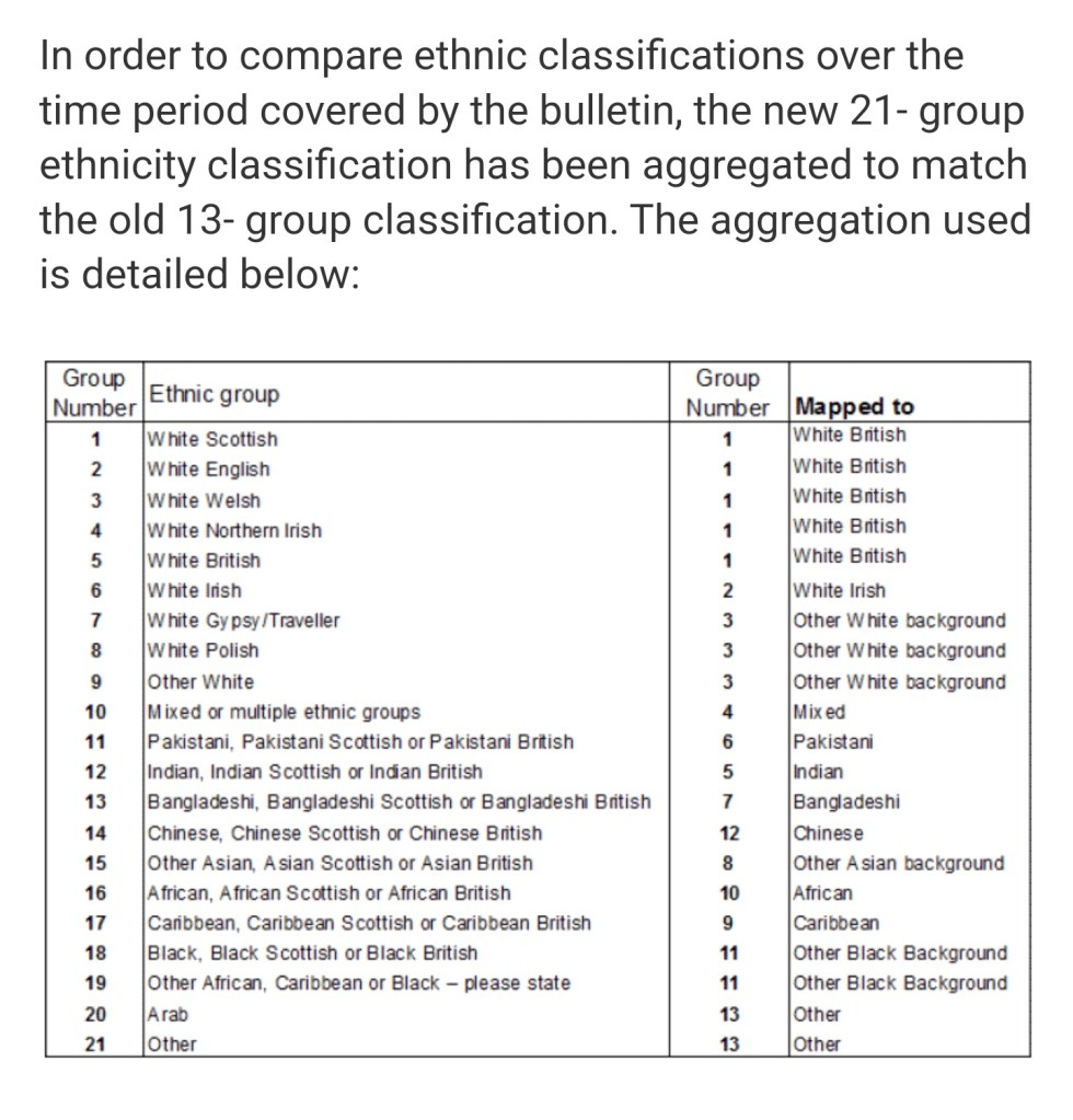 Yet by making the census only record Scottish or ‘Other British’ , and by Scotland’s most racist city not differentiating ‘White Scottish’ from ‘British other’, this data is not possible to calculate for English (not for White English, Pakistani English, Black English or any other variation)