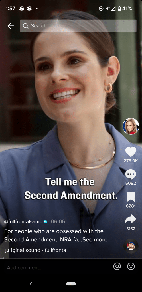 There is an excruciating point in this video of Samantha Bee @fullfrontalsamb asking ‘second amendment’ activists to state the second amendment.