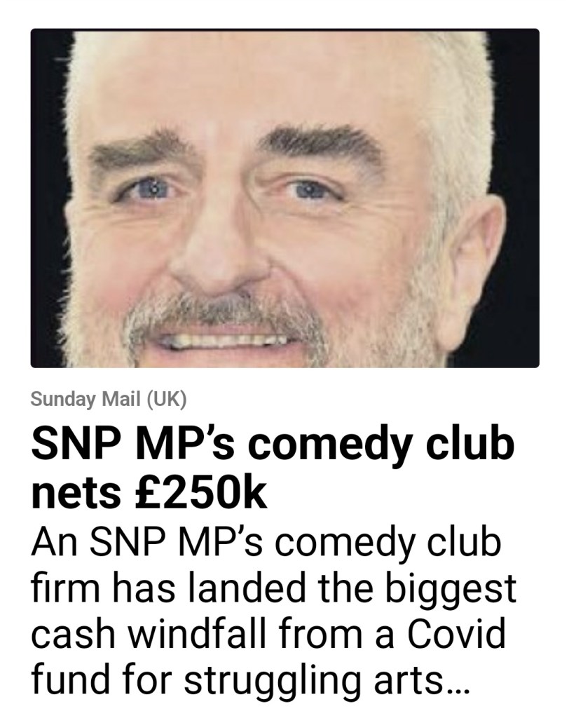 It’s perhaps not surprising that he is a sycophantic supporter of the SNP – he sits on the board of the comedy club ‘the Stand’ owned by SNP MP Tommy Sheppard.